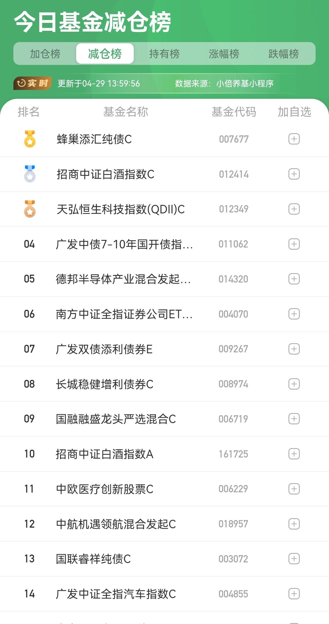 基金加仓榜 基金排名 小倍养基小程序