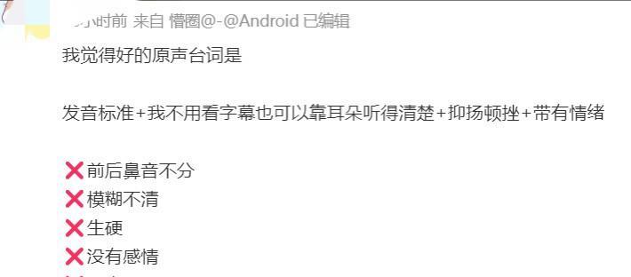 分享 [啤酒] 我觉得好的原声台词是 发音标准+我不用看字幕也可以靠耳朵听得清楚+抑扬顿挫+带有情绪