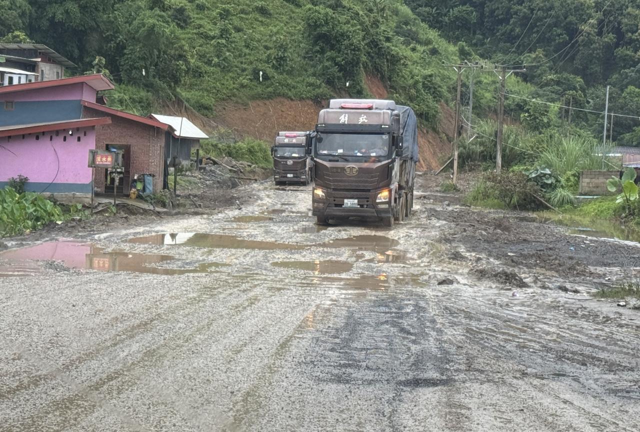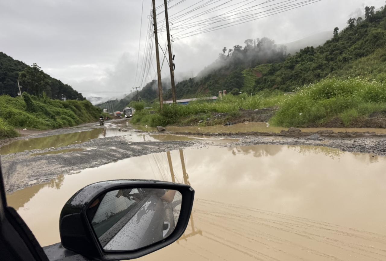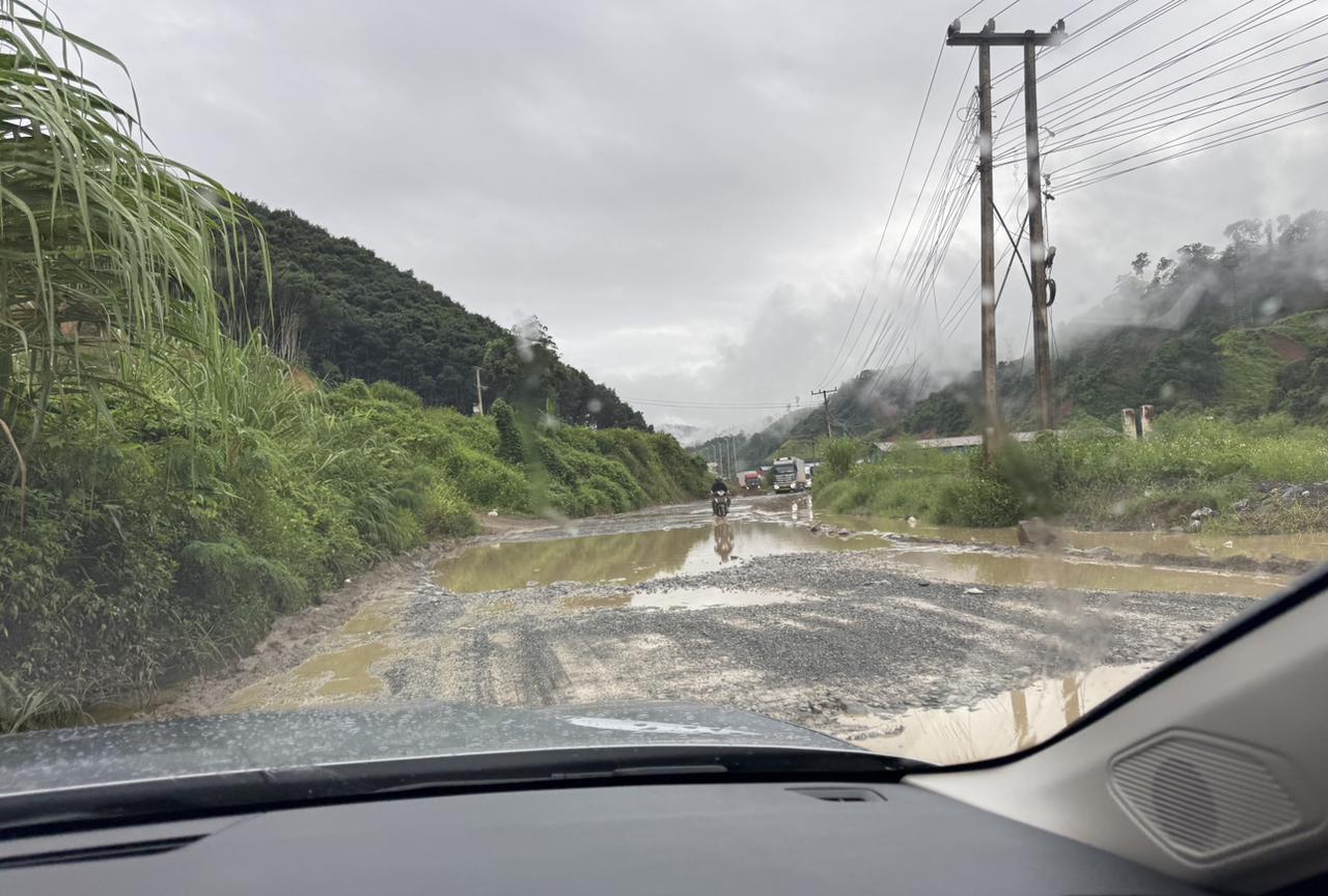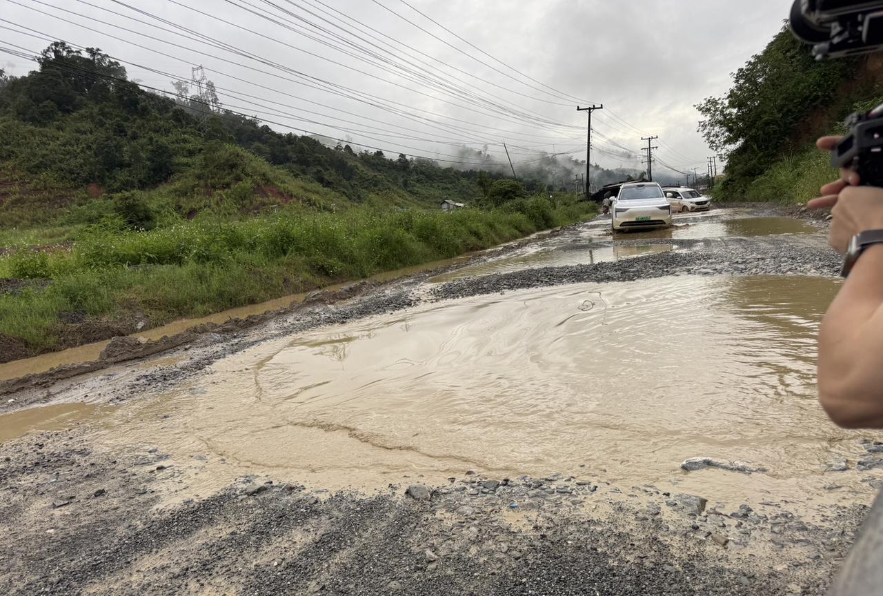 老挝遭遇洪水过后… 全路段路况更烂,全是积水 普通轿车已经过不去了 虽然积水看着