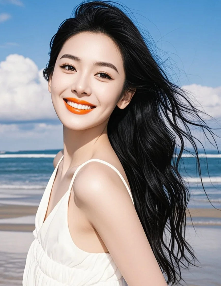 裙角翻飞,追逐着逃逸的浪花