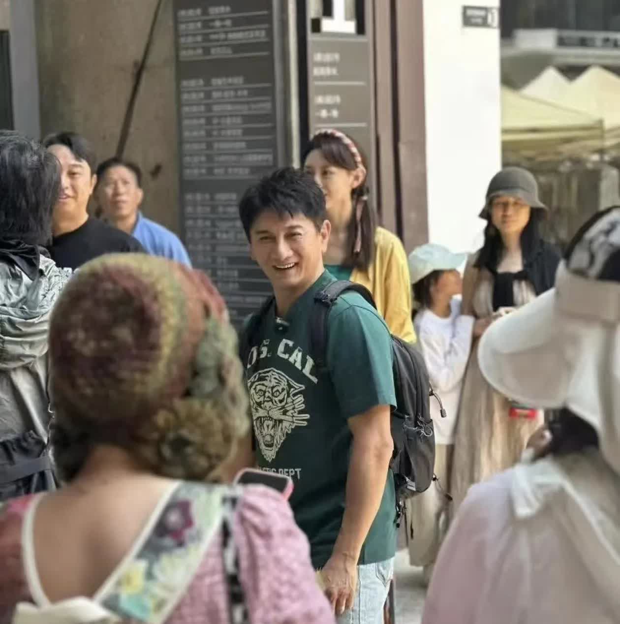 54岁的吴奇隆近日在云南大理录综艺节目,很多粉丝都偶遇了他。 照片看他173的身高看起来像160,可能是最近胖了些,看起来很矮。 他穿绿色的T恤配复古牛仔,打扮很普通,大理的紫外线很强,看上去都晒黑了不少。