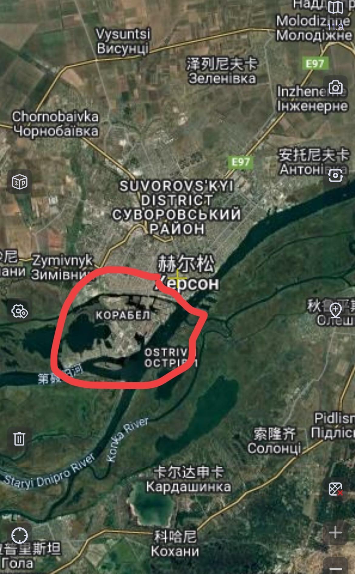 赫尔松市区,俄军再次使用4枚FAB-500滑翔制导炸弹轰炸科尔贝拉大桥的无人机拍摄视频,其中两枚炸弹命中大桥,另外两枚一枚掉了河里一枚掉到了附近街区。目前桥上的已经无法通行车辆, 这座大桥是赫尔松市区连接科罗别尔尼岛的唯一通道,俄军目的就是切断科罗别尔尼岛上乌军的补给。科罗别尔尼岛是第聂伯河上的一座岛屿,面积达3.5平方公里,乌军多次尝试渡河渗透左岸俄军阵地,科罗别尔尼岛成为渡河作战的关键跳板。
