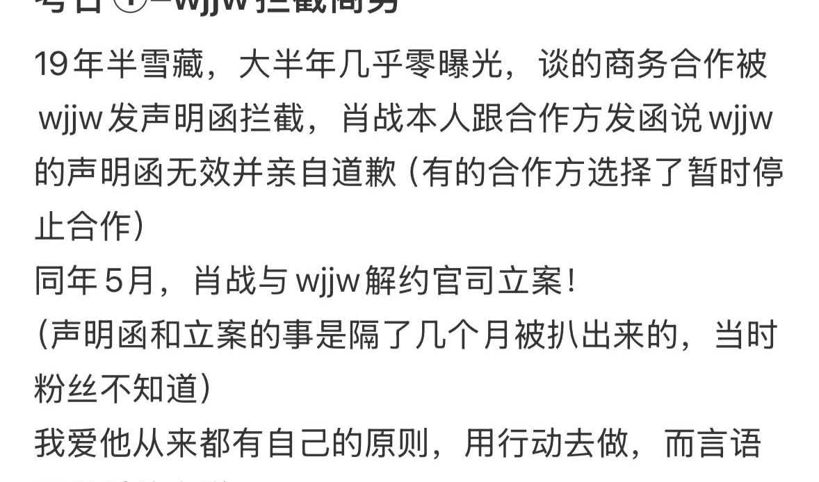 这个小赞赞怎么这么让人心疼[苦涩]原来他在19年6月陈情令播出爆红前,刚刚被前经济公司雪藏了大半年,商务,综艺行程全都受了影响,甚至谈好的商务都会收到挖机声明无效,综艺也半截取消,肖战就亲自给合作方发声明说本人会承担一切已约定好的义务,太刚烈了[泪奔] 他后来甚至亲自起诉前公司,直到19年6月陈情令播出大爆,他有了话语权,最后法庭外和前公司达成协议才撤诉了,真是时也命也[哆啦A梦吃惊]不过从根本上来讲其实还是因为他一直以来的坚持和努力,不放弃,不屈服,最终努力给了他回报,18年他在深山里把命借给魏无羡拍出来的陈情令,最终19年给了他可以抗争自己命运的权力。