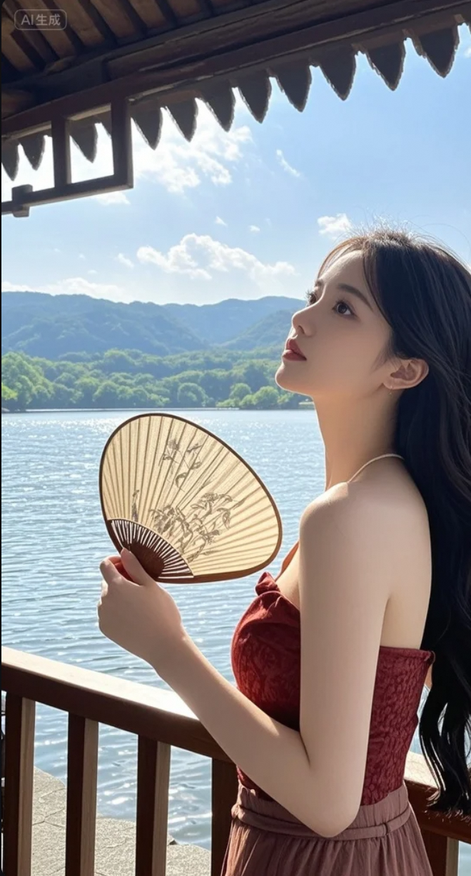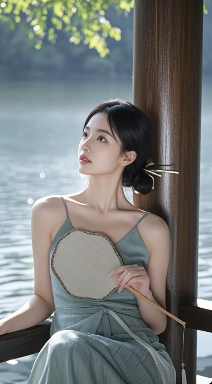 她站在湖边,像一场未醒的梦