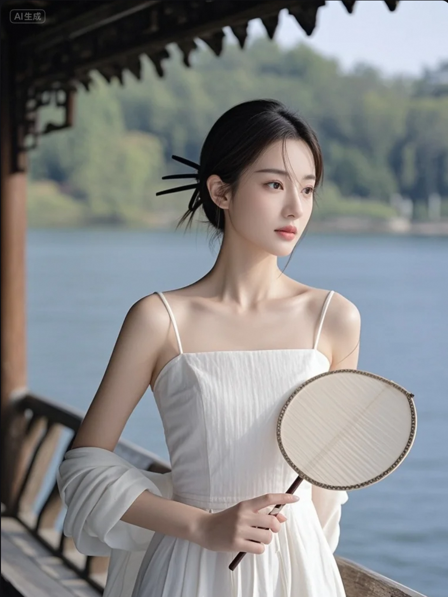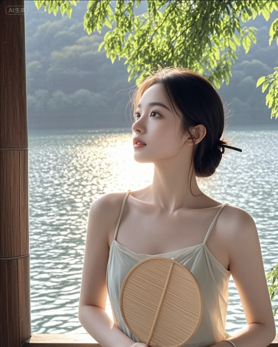 波光粼粼闪烁,映照她内心澄澈的喜悦