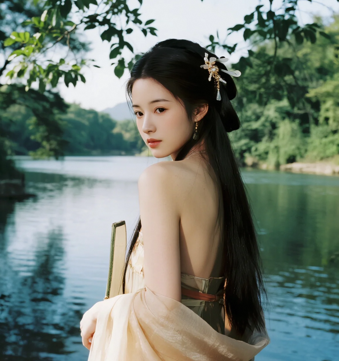 波光粼粼闪烁,映照她内心澄澈的喜悦