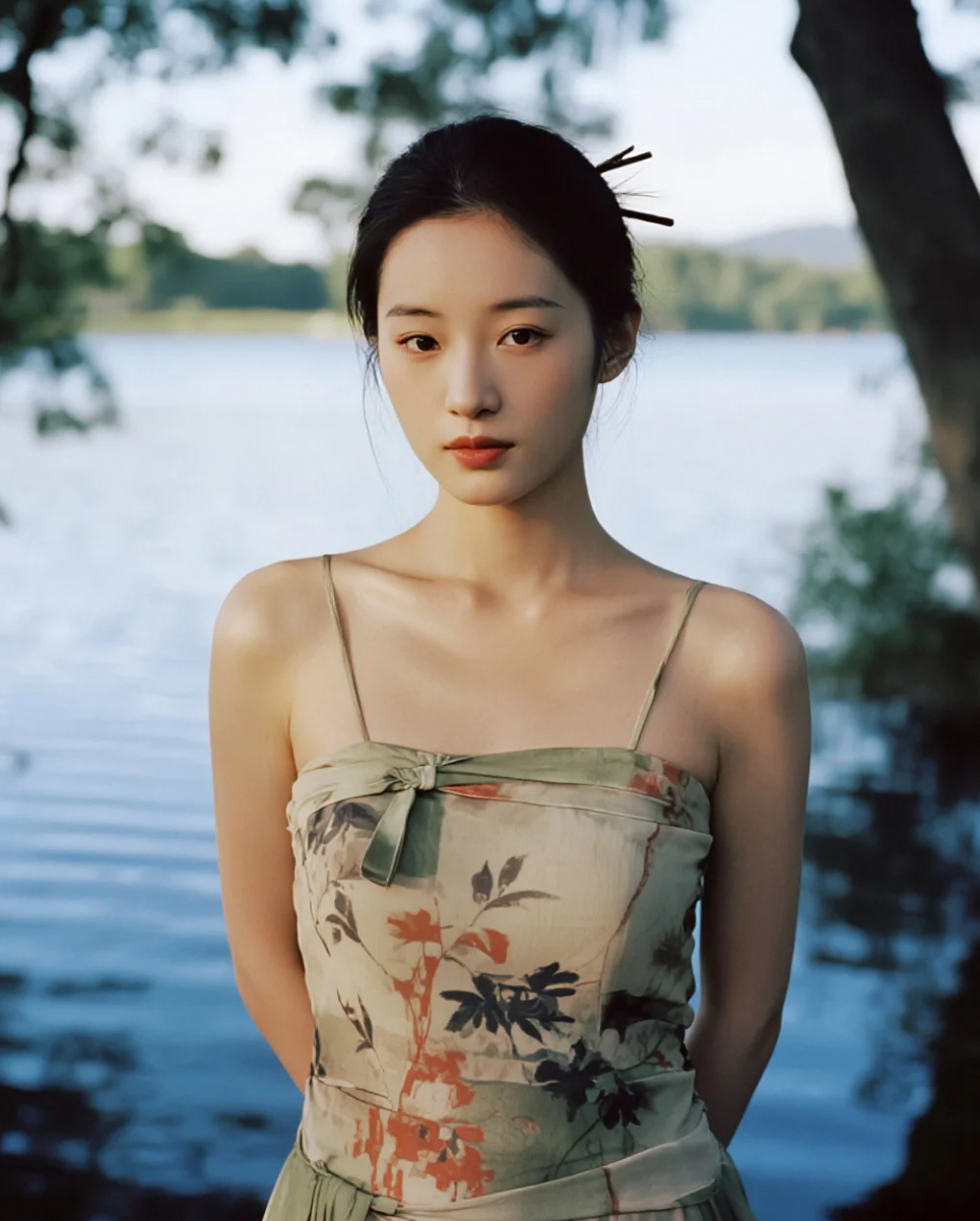 波光粼粼闪烁,映照她内心澄澈的喜悦