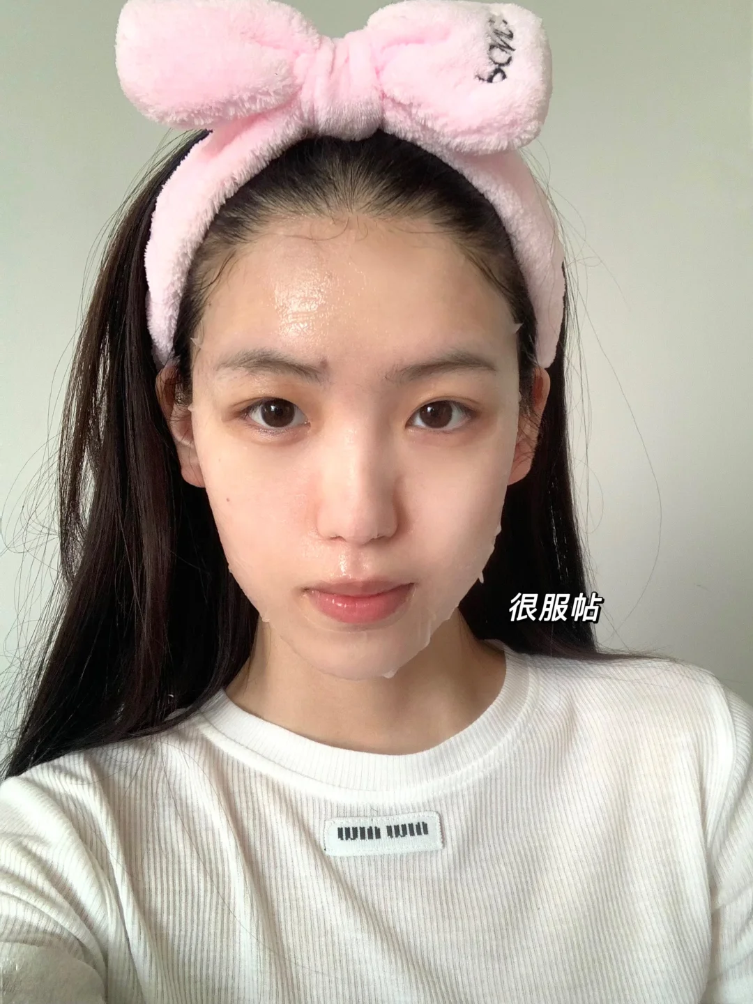 膜布也挺舒服的,上脸水水润润的,敷完脸上也不会有紧绷感,就是那种肌肤喝饱了水之后的光泽和透亮!看起来就是那种清清爽爽的原生美女即视感~
