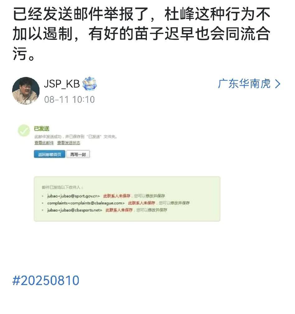 杜锋这次是彻底摊上事了!广东球迷已经写举报信到篮协投诉杜锋打假球! 而且不只有一