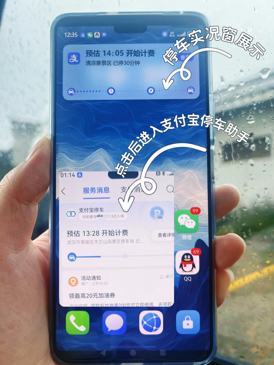 ✅ 车场 6元 / 天,鸿蒙版支付宝的停车实况窗可以提醒停车时长,付款时在负一屏直接打开扫一扫,就能直接跳转到相应界面,超方便