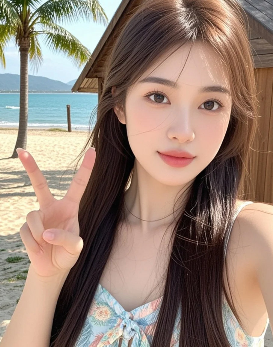 淡妆轻抹,我在海滩上捕捉到了最美的自己。