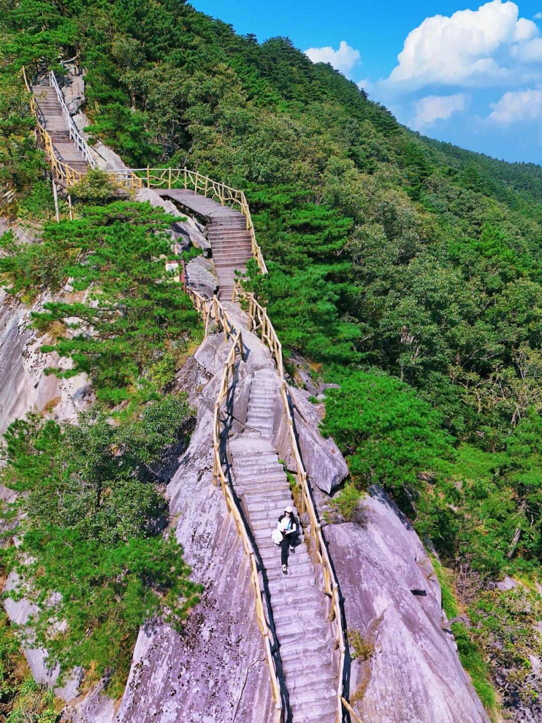 🌟特色:海拔 1408.2 米,森林覆盖率 98%,年均温 16.4℃的天然氧吧。怪石嶙峋,奇松独特,还有古寺,圆梦谷可玩水,旁边还有个古镇