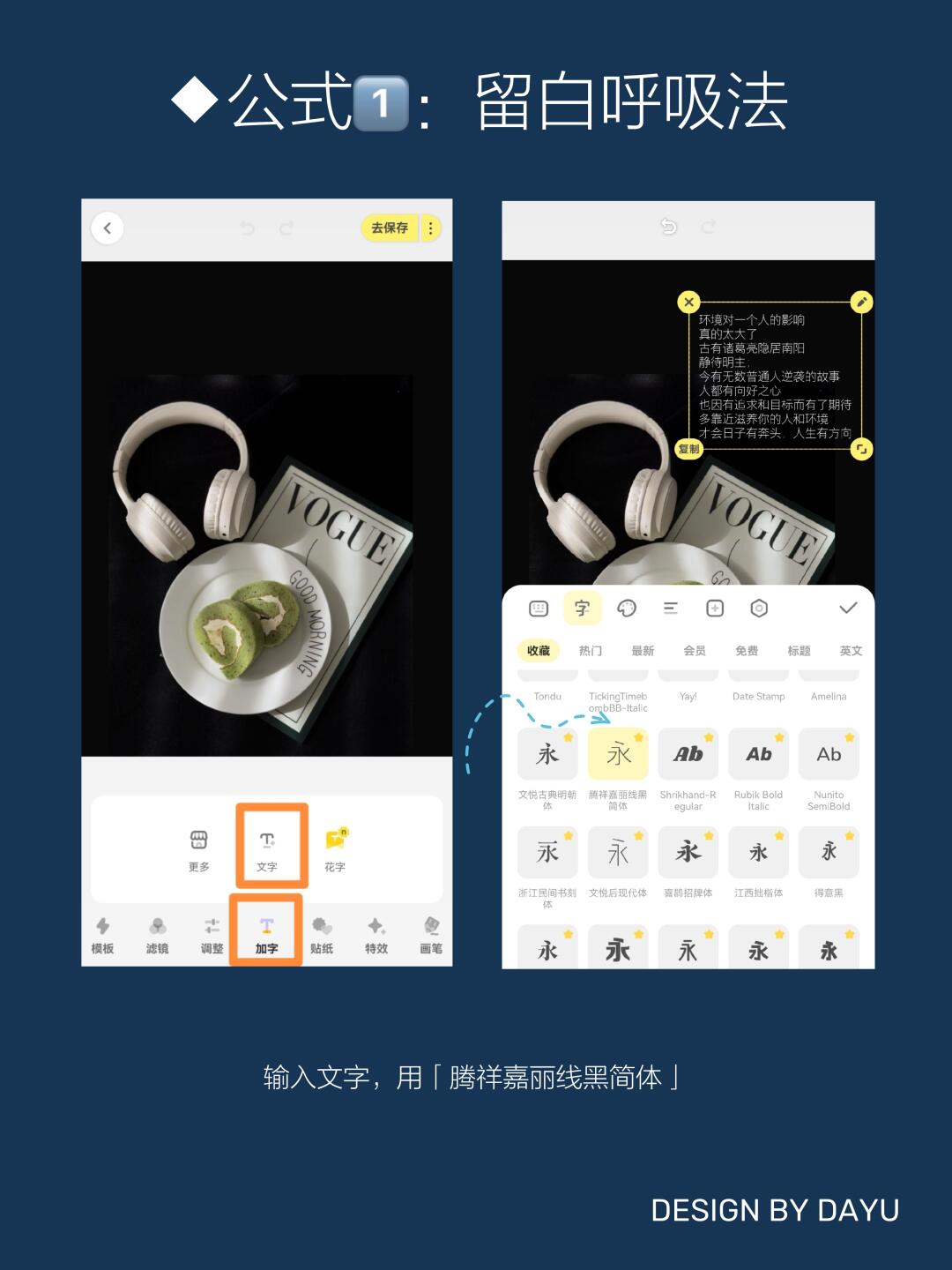 3⃣ 输入文字,用「腾祥嘉丽线黑简体」,注意文字排版要分段,增添呼吸感