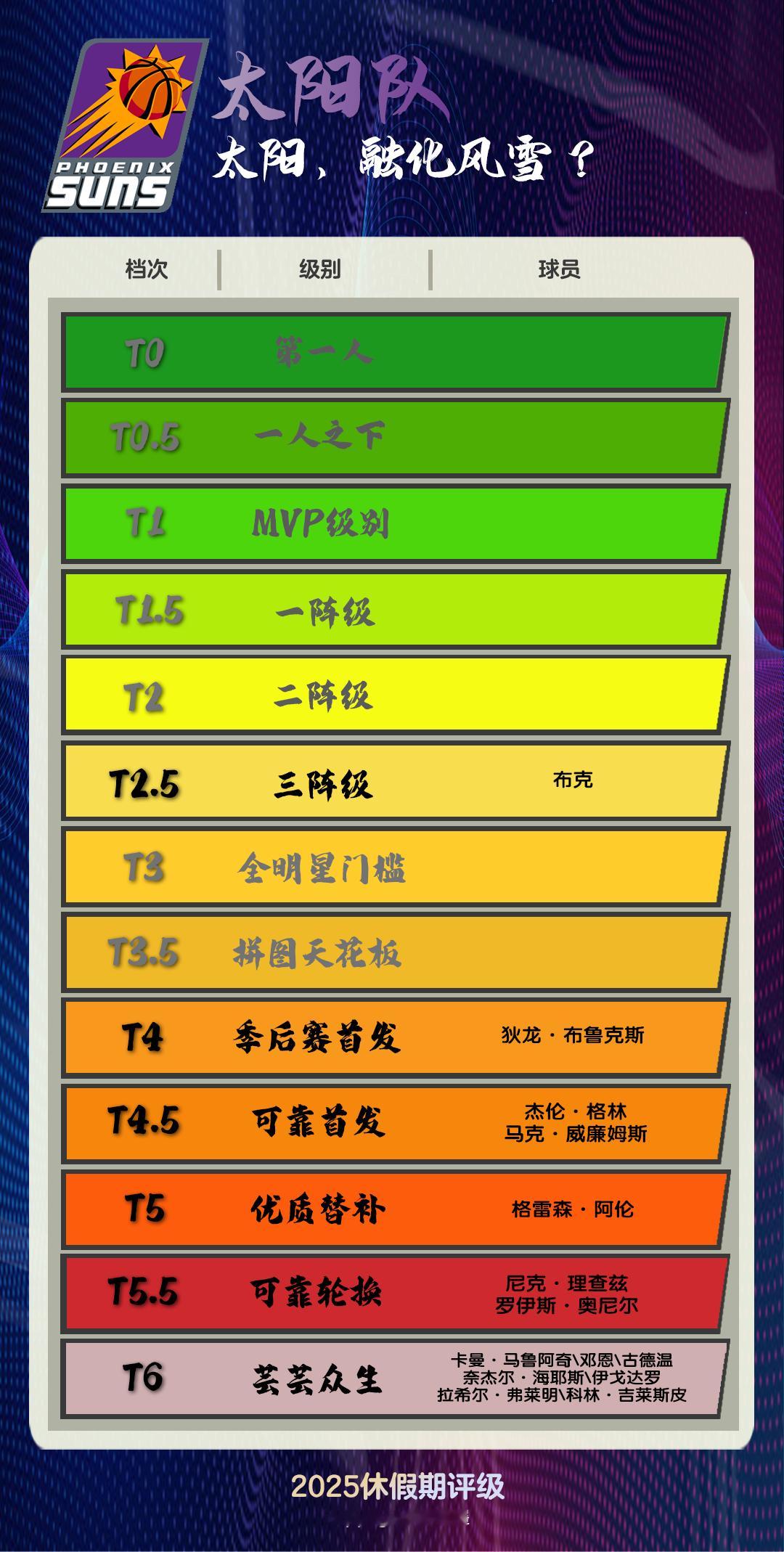 杜兰特交易完成后,太阳就不能犯错了。他们必须用剩余有限的资源获取尽可能优质的战力,并祈祷他们的核心团队足够健康,在杜兰特的合同期内完成对冠军奖杯的冲击。争冠从来不是100%的事情,但赌上一切的建队方式决定了,太阳不太好承受未达100%的那部分伤害;