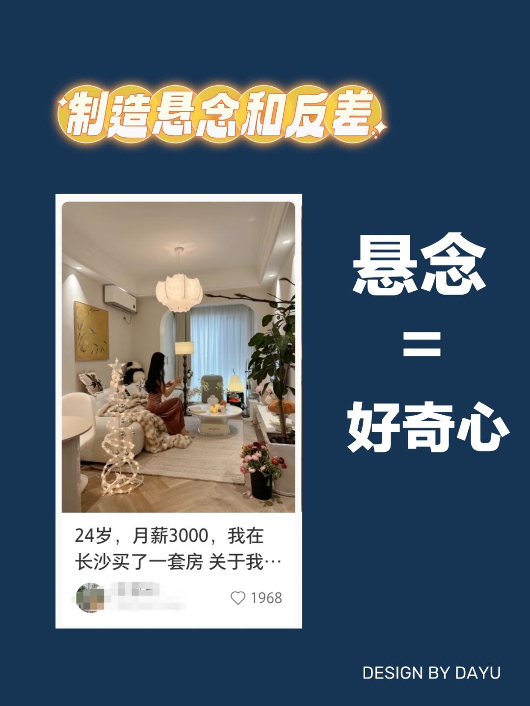 通过设置悬念,激发用户的好奇心。比如,“以为是踩雷,没想到成了我无限回√的宝藏好物”“平平无奇的小县城,居然藏着全国蕞好吃的烧烤”。或者突出反差,如 “月薪 3000 的我,住上了梦中情房的改造秘籍” 。