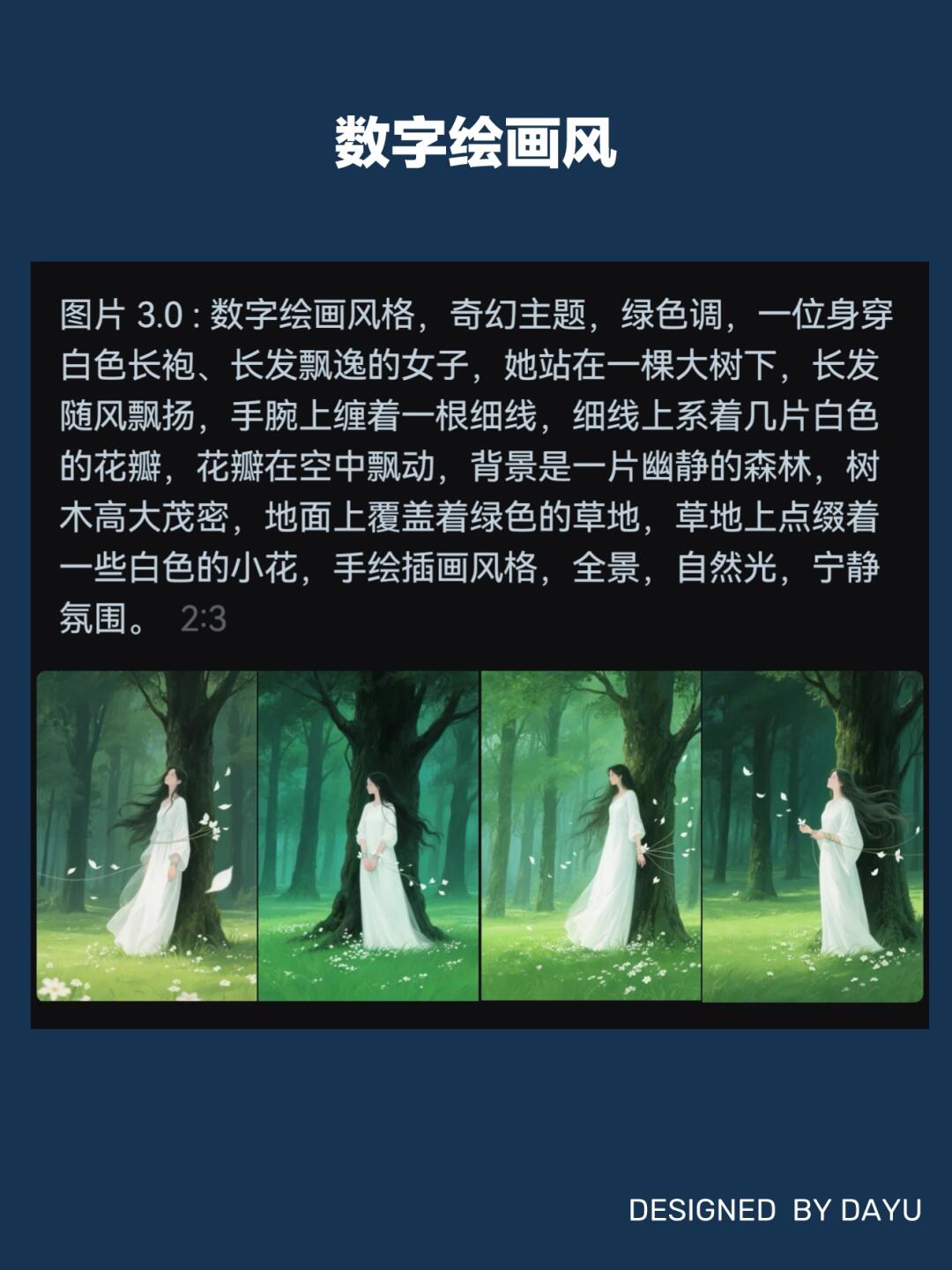 这里大雨每张图片都给大家提供了提示词,但是还是要提示大家,提示词也不是万.能的,你输入我的提示词可能跟我生成的图也不会一模一样,你就当成是开盲盒,说不定哪个盲盒就能给你开出意想不到的惊喜。