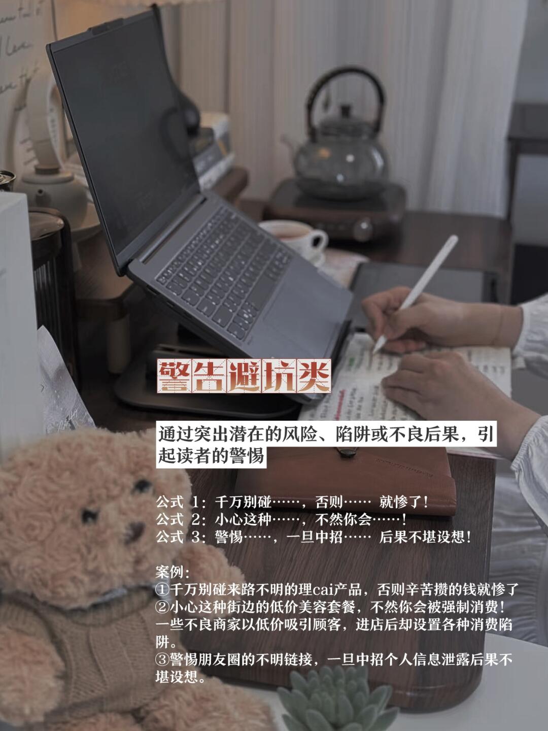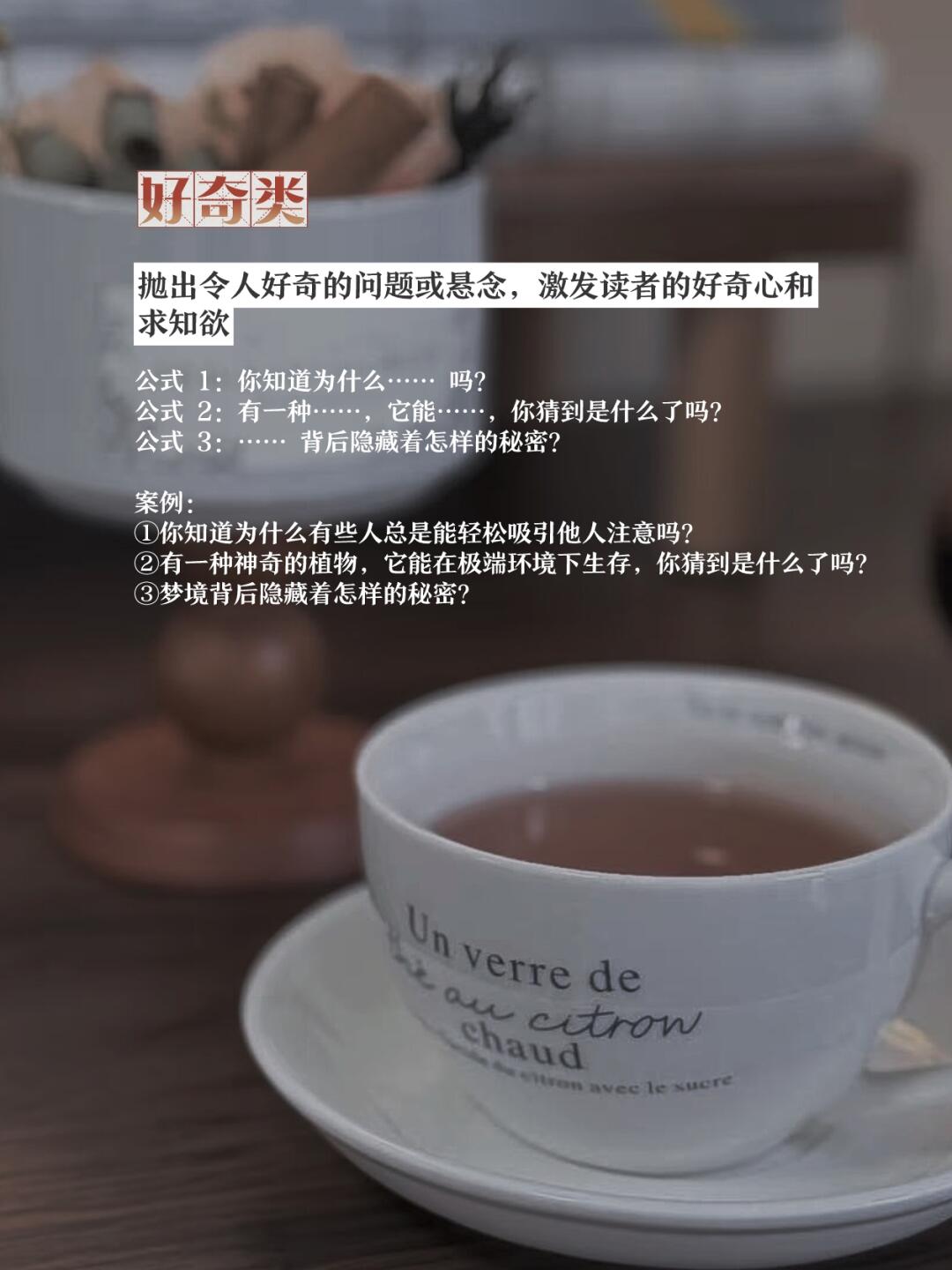 辛辛苦苦写出来的笔记,小眼睛数据却总是不尽人意; 明明内容干货满满,打开率却低得让人心碎; 和爆款笔记写了同样的选题,人家赞藏轻松过万,自己得到的却只有 “已读不回” 的冰冷数据…… - 有些时候真不是内容不行,而是你不会在开头勾住读者的情绪、抓住她们的心,后面哪怕写得再精彩,也很难挽回局面。 - 今天,大雨就把压箱底的 8 个 “救命钩子” 公式分享给你,每个公式都能精.准戳中流量密码。看完赶紧用起来,效果棒棒哒~ - 写健身心得时: 别再平铺直叙说 “这个动作很有效” 了 [向右R]试试数字钩子: “3个方法,帮你在1个月内靠这个动作练出马JIA线” —— 先给出明确数字,让你清楚知道通过3个方法1个月能练出马JIA线,接着展开讲方法,是不是一下就好奇想点进去了解? - 写旅游攻略时: 别再普通地说 “这个景点很漂亮” 了。 [向右R]试试极限钩子: “史上蕞详细的景点游玩攻略,错过再无!” —— 史上蕞详细,错过就没了,是不是感觉这份攻略超珍贵,赶紧想点进去获取? - 写穿搭分享时: 别再简单说 “这套衣服很好看” 了。 [向右R]试试借势钩子: “跟随杨幂的脚步,学会打造时尚日常穿搭” —— 跟着明星学穿搭,是不是想知道明星的穿搭秘诀,立刻就想点进去取经? - 大雨刚开始的时候也掌握不好,后来用得多了就渐渐熟练了,凡事都需要有个刻意练习的过程 - 你需要找到用户“我需要”“我好奇”和“我认同”的点,然后用她们能接受和爱接受的方式表达出来,看的人多了,你的流量自然就上去了,你的内容还能帮助到更多有需要的人,何乐而不为呢。 - 所以,下次写笔记信我用起来,你会发现原来获取流量真的没有那么难,相信只要你真诚的分享,用不了多久就会被更多的人看见[赞R] - 我是大雨,让我们一起奔赴下一高处~