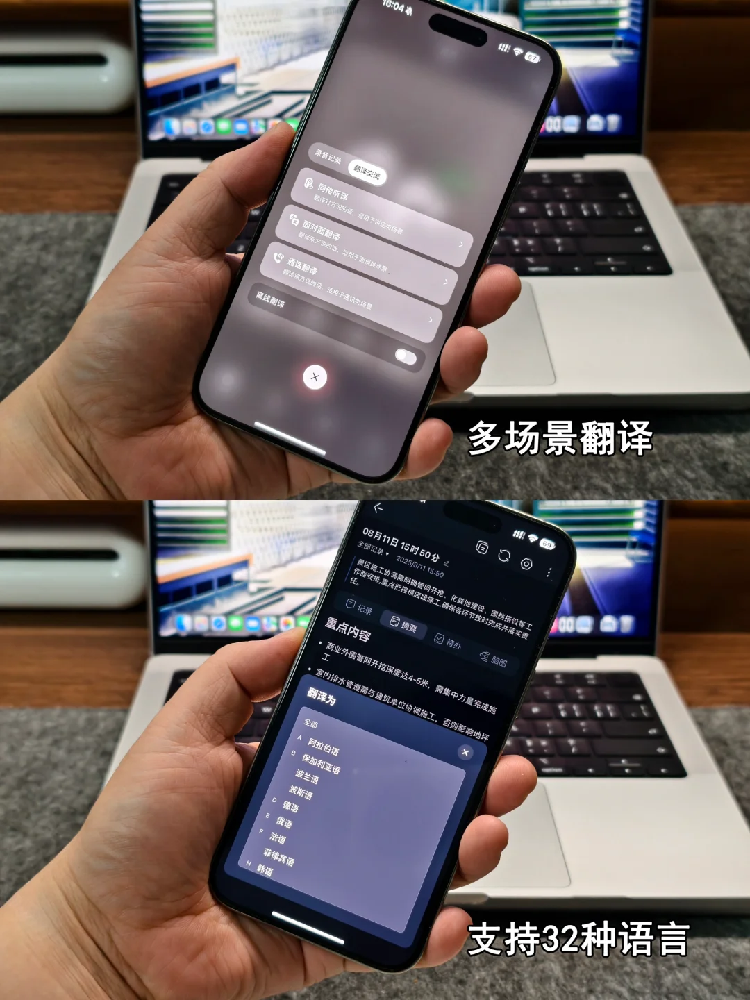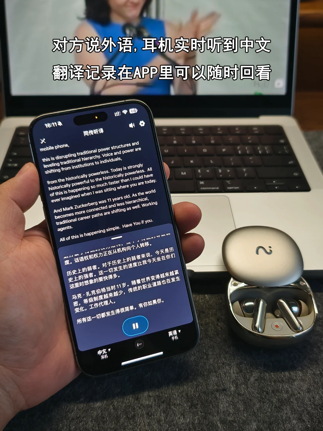 如果他平时还有外语沟通的需求,这款耳机的多场景翻译功能也能助他一臂之力!32种语言实时翻译,无论是和外国客户远程沟通,对方说外语时,耳机里就能同步传来清晰中文;就算是面对面交流,双向互译也能无缝衔接,再也不用为语言不通而焦虑,更贴心的是,所有翻译记录会自动同步到APP里,后续想回顾细节随时能翻看。