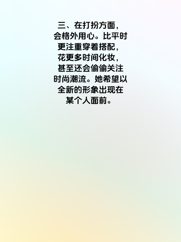 一、女人有外遇前,往往在情绪上会有明显变化。原本开朗乐观的她,可能突然变得莫名烦躁,对生活中的琐事容易大发雷霆。比如,以前你偶尔忘记倒垃圾,她或许只是轻轻提醒,现在却可能为此大动肝火。 二、她的社交活动也会悄然改变。开始频繁外出,而且常常很晚才回家,对自己的行踪变得含糊其辞。以前她会主动和你分享每天的行程,现在却总是借口忙,不愿细说。 三、在打扮方面,会格外用心。比平时更注重穿着搭配,花更多时间化妆,甚至还会偷偷关注时尚潮流。她希望以全新的形象出现在某个人面前。 四、对亲密关系的态度也有不同。不再像以前那样主动与你亲昵,拥抱、亲吻变得敷衍。在床上,也可能表现得很冷淡,仿佛心思不在你身上。 五、手机成了她格外珍视的物品。总是机不离手,还会刻意避开你接打电话,聊天记录也会频繁删除。当你靠近时,她会显得格外紧张,生怕你发现什么。若你留意到这些征兆,一定要冷静沟通,找出问题根源,尽力挽回感情。