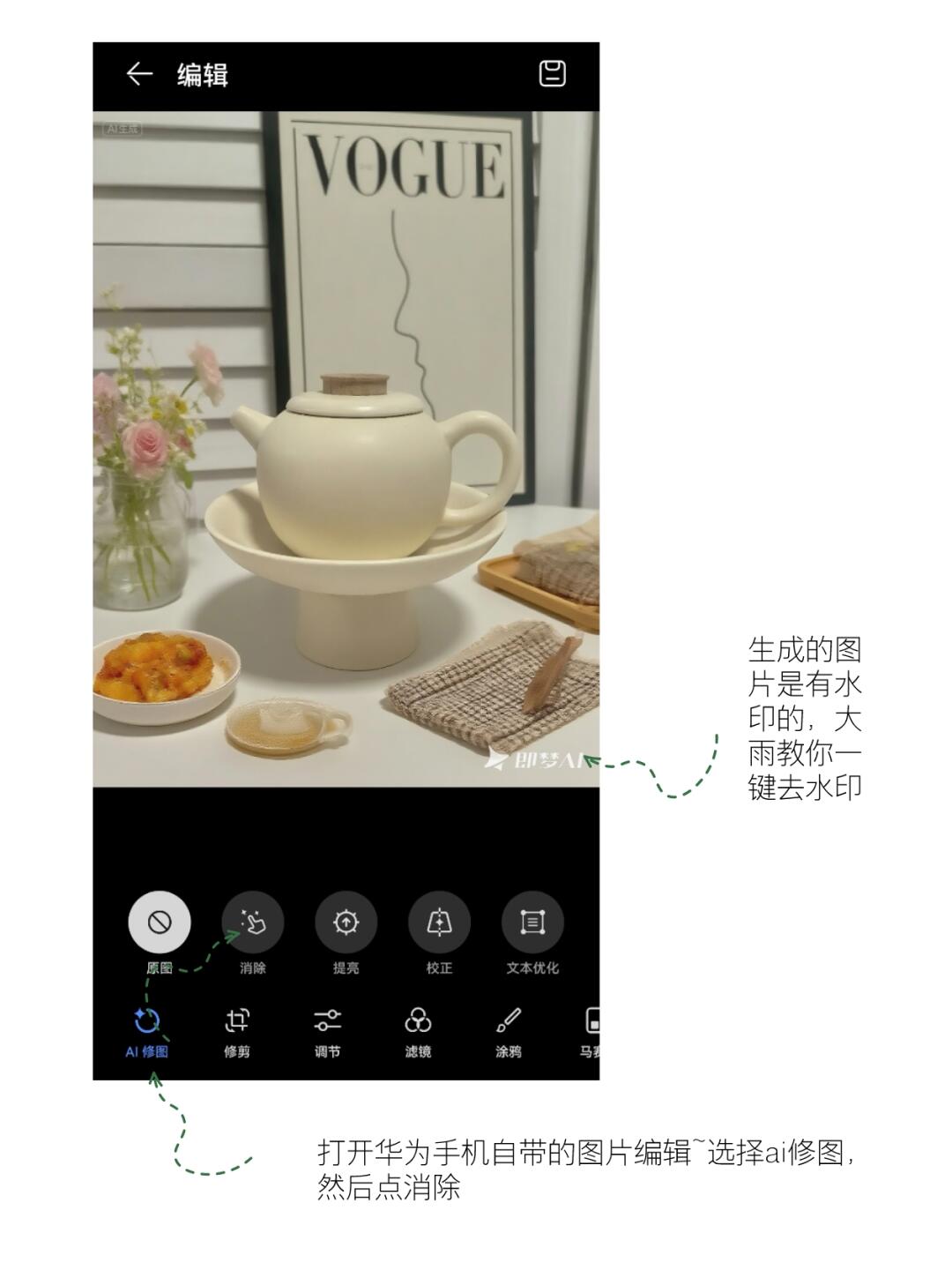 那么生成的图片如果你不买会员,是会有水印的。如何一键去水印,大雨教你~