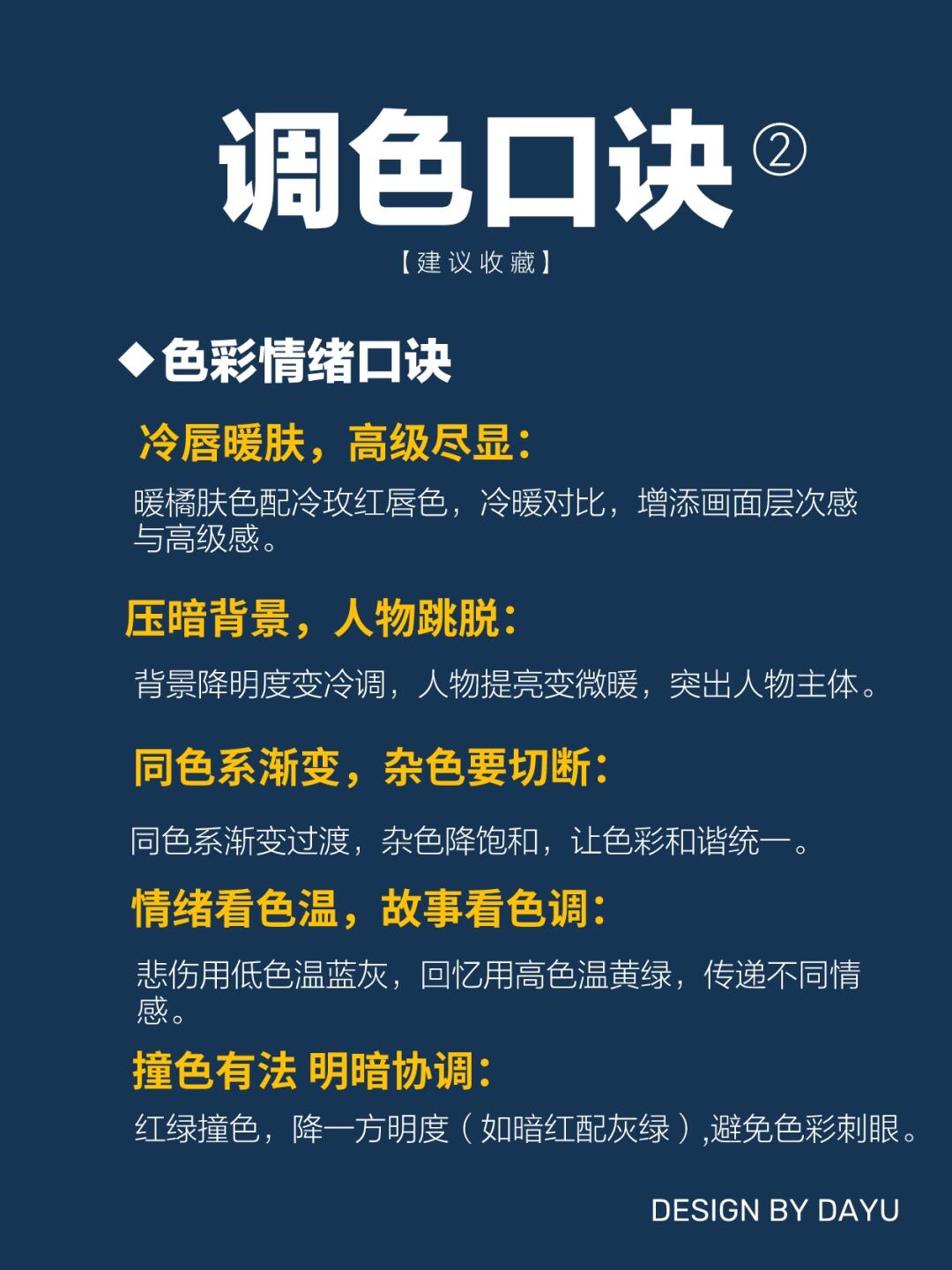 姐妹们!你是不是对老是觉得调色这件事很难啊,今天大雨把我压箱底的调色口诀都掏出来了。20个调色口诀,直接讲底层逻辑,背下来去用,让你调色像开了天眼!