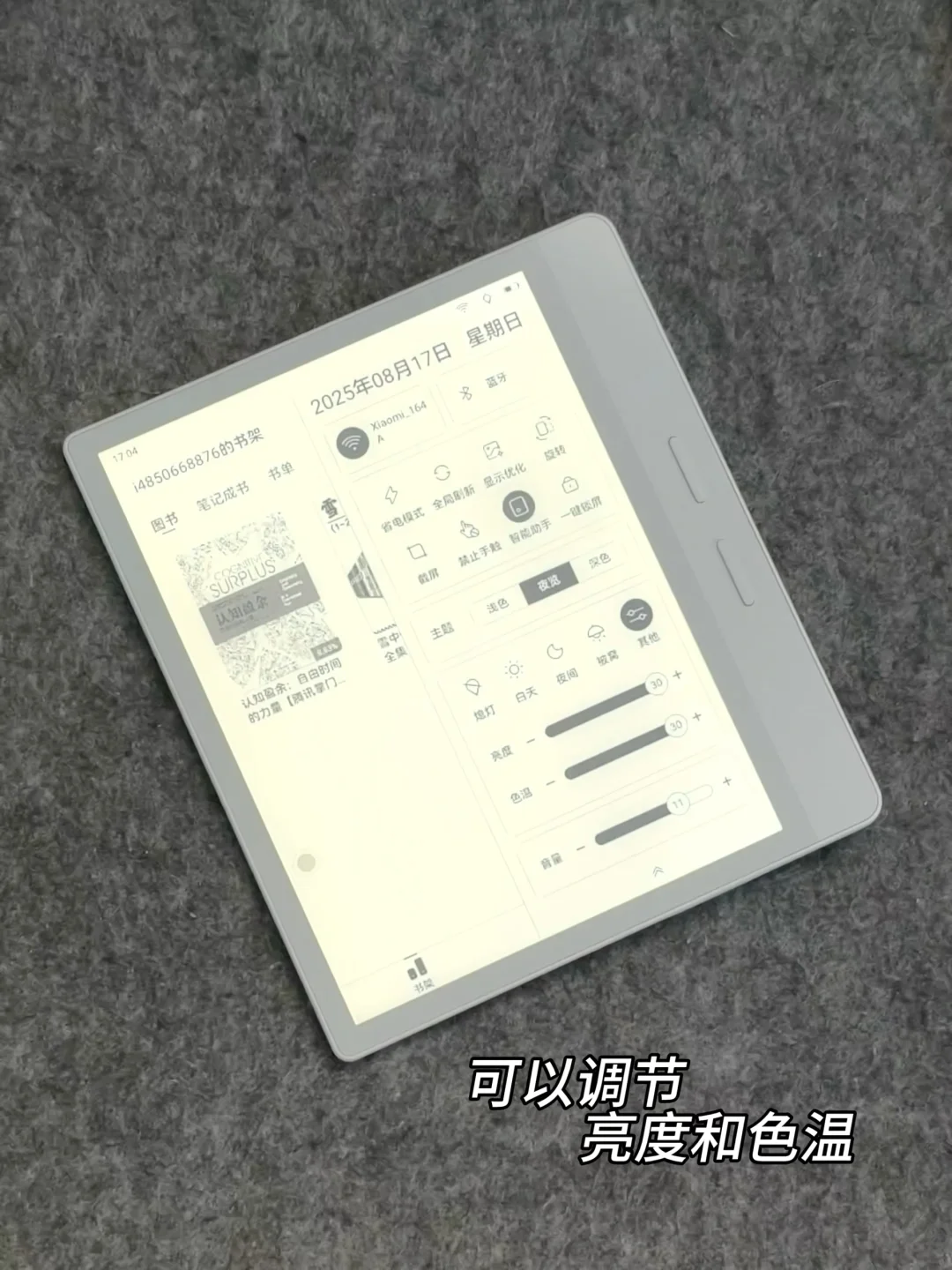 自带的阅读灯还支持色温与亮度的多档调节,无论是白天强光还是夜晚昏暗环境,都能轻松适配,让阅读时刻保持舒适状态。