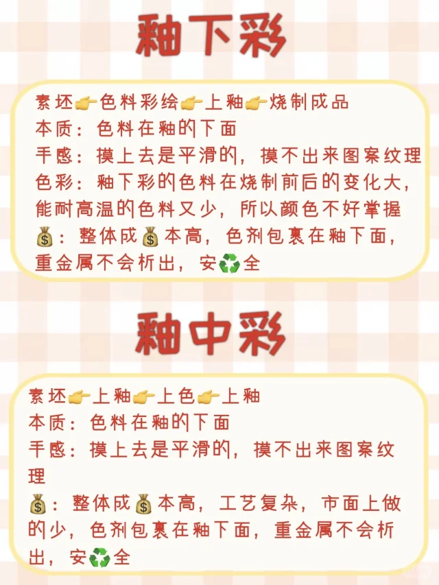 🔹釉下彩、釉中彩、高温色釉,是可以放心入的,重金属基本可以忽略不计