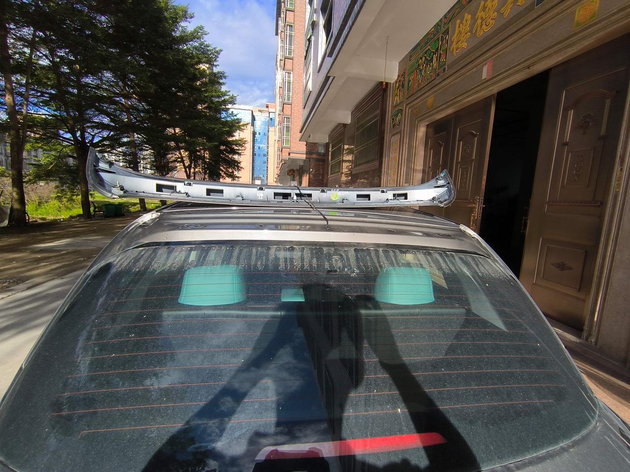 这车没有后雨刮,雨天车内后视镜影响观察,所以安装了流媒体记录仪,后摄像头装车内效果太差,装牌照灯位置又太低,夜间容易被后车灯光直射无发抑制强光,后来发现尾翼可以轻松拆卸就把摄像头移到车外,目前来看这位置安装后摄像头是最理想的,不需要打孔也不需要大拆,走线安装也简单