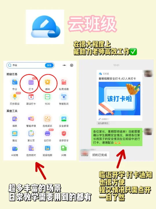 🔸平时发布作业、通知、打卡、填表、私密发布成绩单等,功能超全。