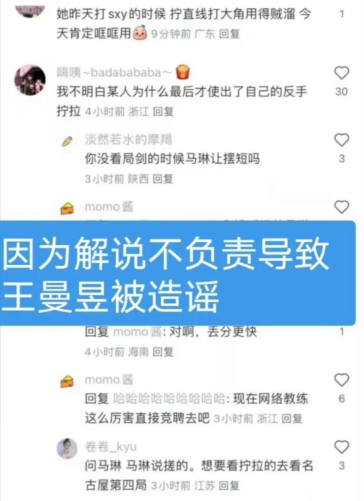周雨的解说太偏颇,你最好还是给曼昱道个歉,你的解说就不能一碗水端平吗? 首先