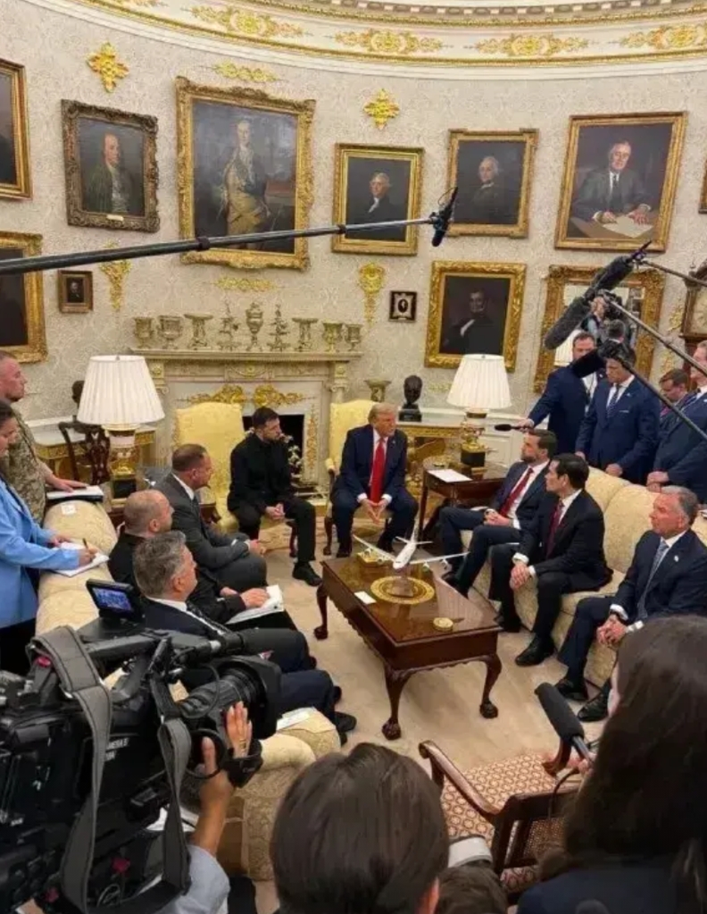 韩国总统李在明在白宫坐的椅子和乌克兰总统泽连斯基坐的椅子是一样的,桌子也是同一个,两个人的坐姿也差不多,都是坐了半个椅子,身体倾向了特朗普。