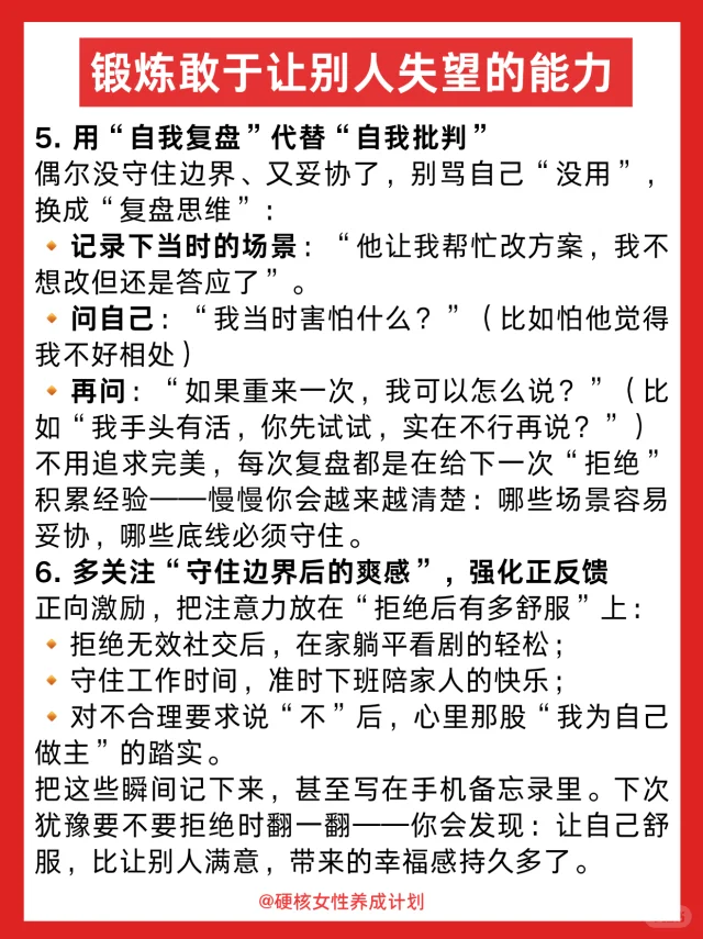 3️⃣不害怕让领导失望,不被功利和优绩主义绑架,坚守生活与工作的界限,不让人生变成没有终点的赛跑,那些因为你拒绝过度付出就不满的人,本就没把你当人,只当你是随叫随到的工具。