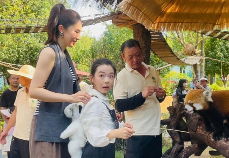 董璇和女儿小酒窝到浙江动物园玩,母女俩打扮都好时尚,两人的脸型五官太像了,女儿遗传了妈妈的美貌,真的太好了!