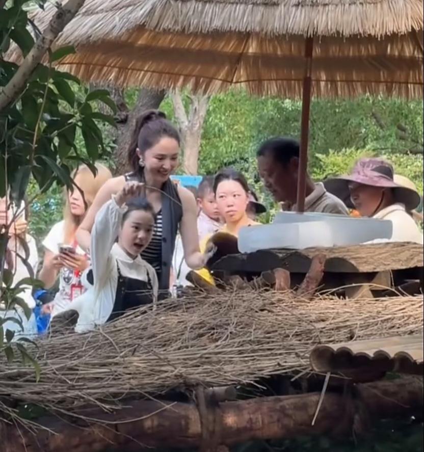董璇和女儿小酒窝到浙江动物园玩,母女俩打扮都好时尚,两人的脸型五官太像了,女儿遗
