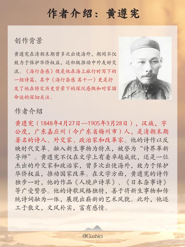 甲午战败后,满清割让台湾给日本,清朝黄遵宪的一首《台湾行》诉说了台湾人民的悲忿。 城头逢逢雷大鼓, 苍天苍天泪如雨。 倭人竟割台湾去, 当初版图人天府。 天威远及日出处, 我高我曾我祖父。 艾杀蓬蒿来此土, 糖霜茗雪千亿树。 岁课金钱无万数, 天胡弃我天何怒。