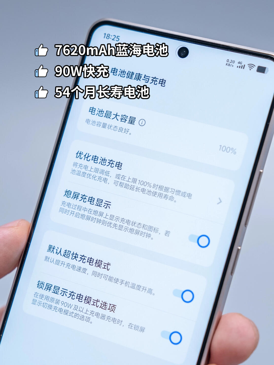 先说很多人比较关心的续航。它用了一块7620mAh蓝海电池。我这种重度手机用户连续刷视频都能刷一天。90W闪充更离谱,早上起床插上充电器,洗漱完就能撑一整天。