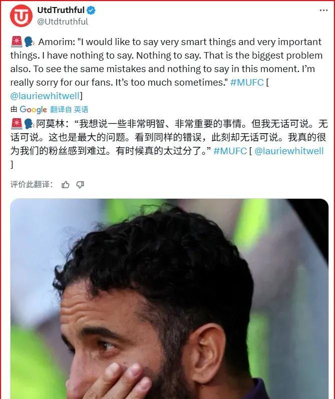 曼联已死,死于系统性的自我腐烂。 凌晨的雨只是背景,真正刺骨的是数据:29轮28