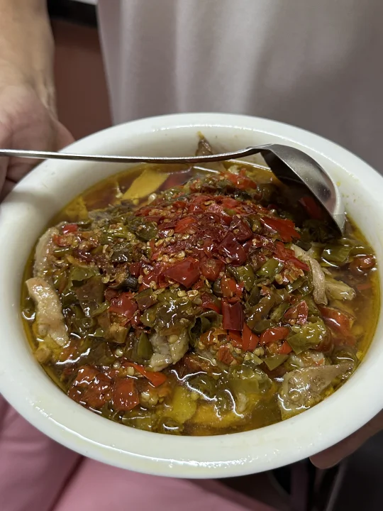 不想公开、但也不想它被埋没、 我老师推荐我来的、 不是门面、就开在自家民建房里 开了25年了 很多菜都是老板妈妈自己研发的、 酸辣椒蒸鸡、油淋七寸、青椒筒子骨都值得特意过来吃 没什么环境、但有回自家屋里吃饭的感觉 好停车、人均60