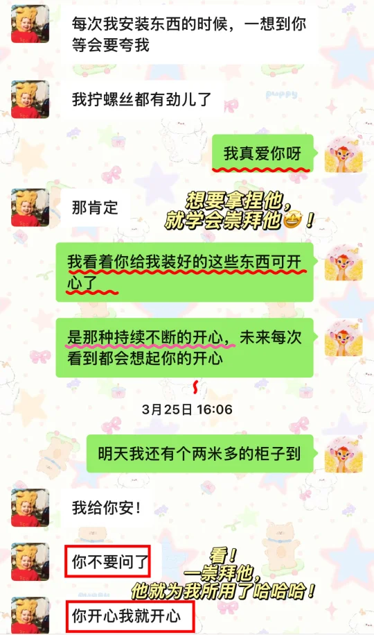没有人能拒绝小女生的崇拜感,我都和老李谈了7年了,还是会时不时装出很崇拜他的样子。