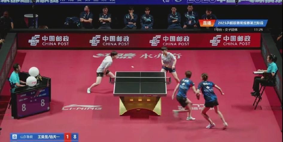 乒超最难的一见的,最精彩的女双比赛在深圳大学和山东鲁能之间展开。 孙颖莎配蒯曼对