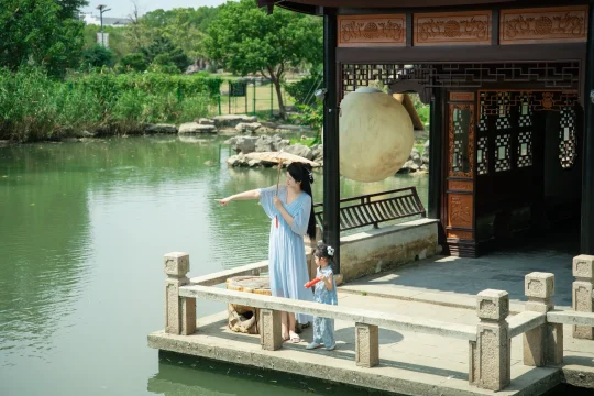 带女儿一起下江南,亲子清冷风,氛围感拉满🍃 看到迷你小号的自己一起穿越,好甜好爱[飞吻R] 虽然是同里湖大饭店送拍 但是酒店里的达观园真的很出片哈 热是热了点 奈何好看呀 值啦!