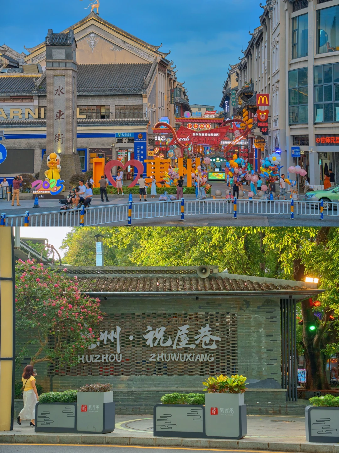 🔹水东街:位于合江楼下,惠州的一条宝藏商业街,骑楼建筑非常有特色,夜晚亮起灯光,充满复古氛围,无论是逛街吃饭,还是拍照打卡,都很不错