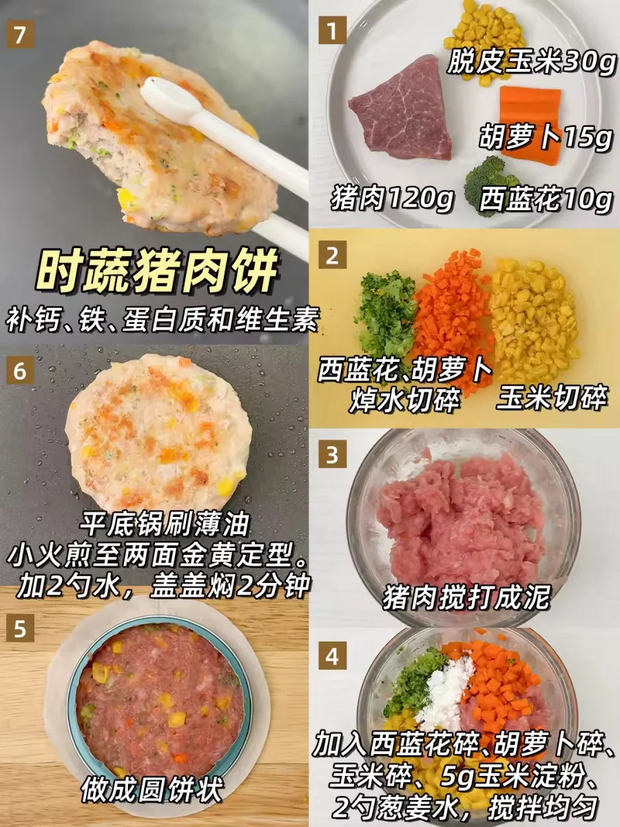 🥩肉类是优质蛋白的来源,所以肉饼的主料可以是👉鸡肉、牛肉、猪肉、虾肉等。同时,搭配一些蔬菜来增加维生素和纤维,比如胡萝卜、西兰花、玉米、山药等。宝宝可以用小手抓着吃,还能锻练抓握和咀嚼力!