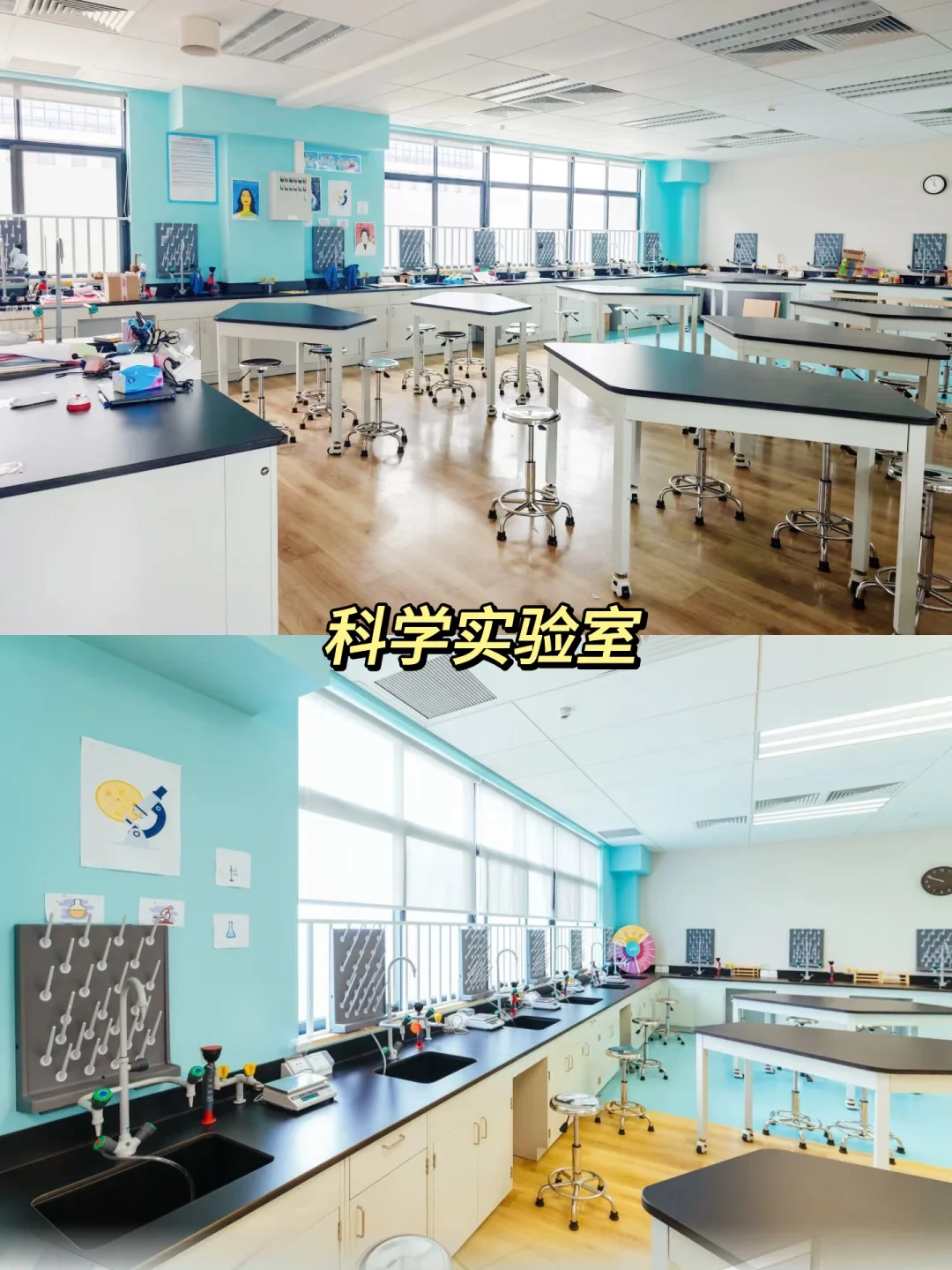 √学校不同类型的实验室是一大特色,包括科学实验室、物理实验室、化学实验室、生物实验室,还有乐高空间、STEAM实践空间以及计算机室等。每间教室的面积都在90~100平方米,整体排风设计和尾气处理系统都采用了智能化控制,在安全方面一点都不含糊。