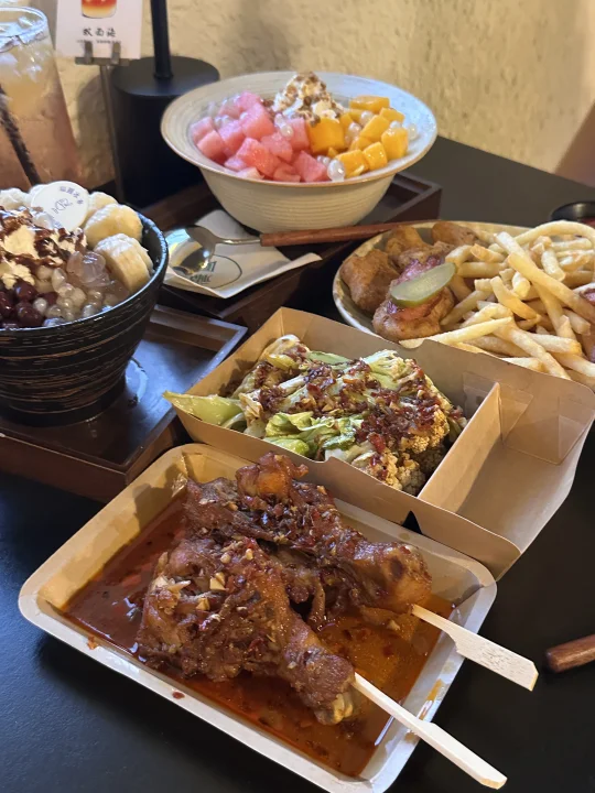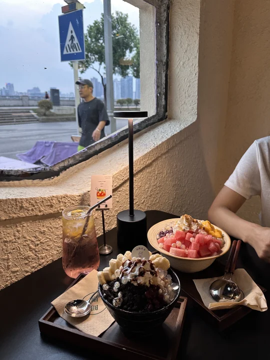 偶然路过的时候发现的 是那种看见门头就特想进去看看的小店 装修看起来真的很野生、但却又透露着用心和温馨~ 室内空间比较迷你~ 好在外面也有位置且氛围也还不错 主要卖刨冰、咖啡、特调8➕1还有炸物和小吃 替你们尝试过了、真的都值得特意来吃。