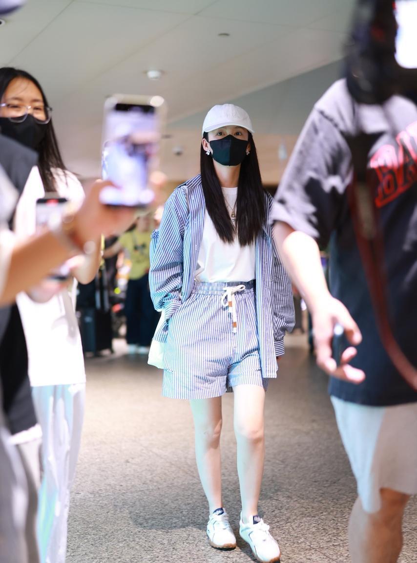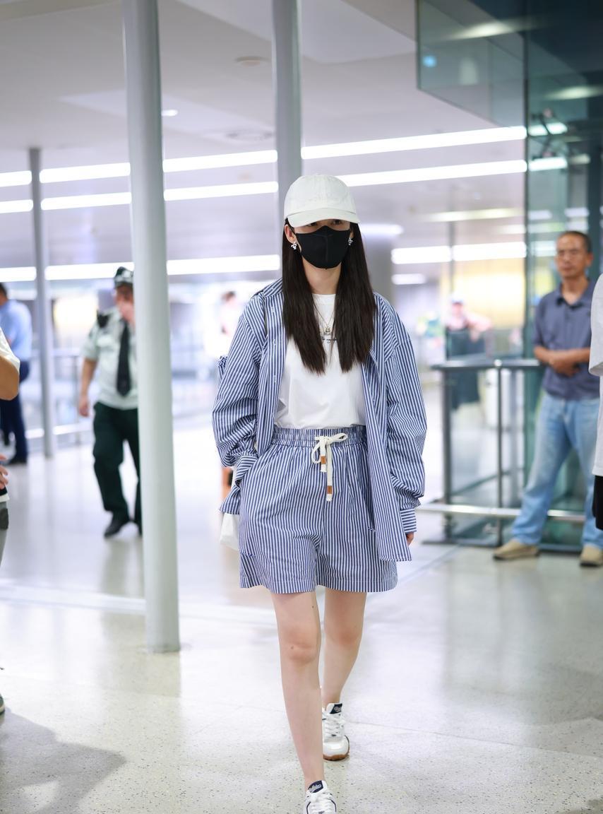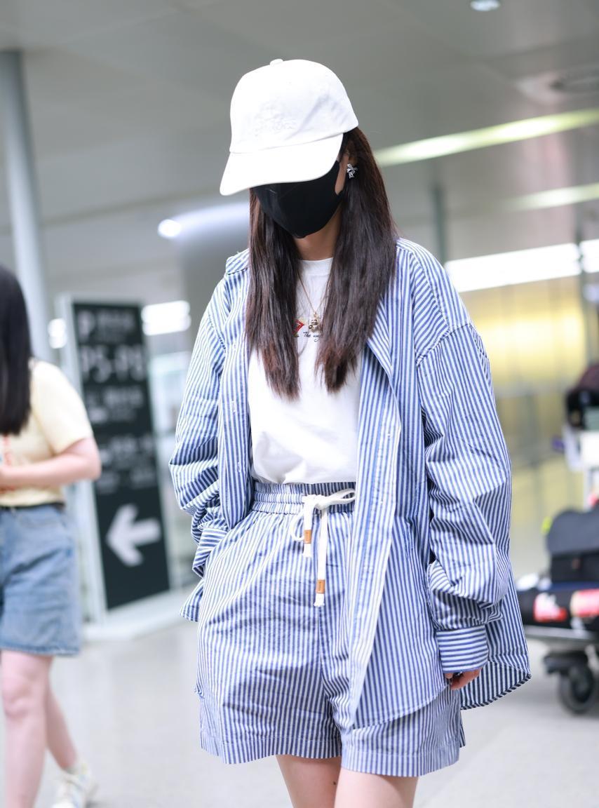今天李沁现身上海机场,她这会搭配的很简洁,看上去也很显年轻。 李沁里面穿白色T恤,外面套装蓝色的大码条纹衬衣,两件衣服叠穿的效果很不错。 她下身穿蓝色短裤,彰显出了完美的身穿比例,真的是太漂亮了。 李沁这回大秀细腿,凸显出了满满的俏丽时尚范儿,看起来很有吸引力。 她脚踩白色复古风运动鞋,头戴白色棒球帽,确实是太潮了,显得好美。