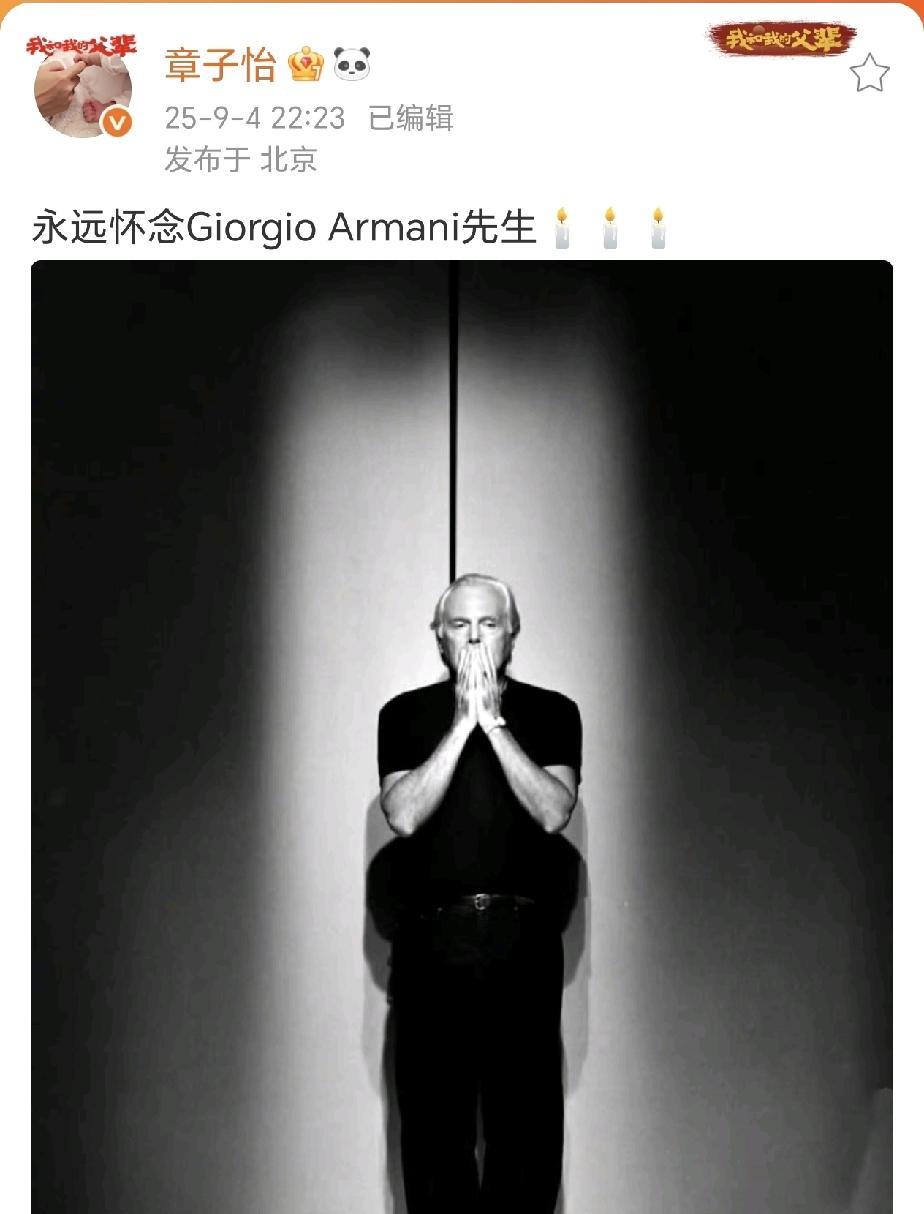 章子怡深夜发文, 沉痛悼念阿玛尼先生! 人的感情是相互的,章子怡有情有义!让人动容。