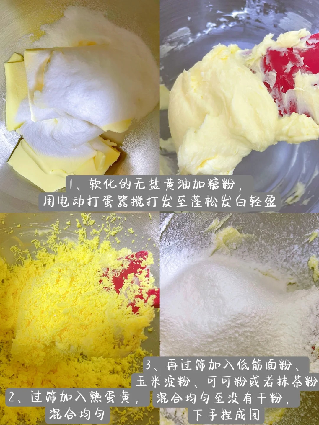 无盐黄油50克|糖粉20克|熟蛋黄1个|低筋面粉45克|玉米淀粉40克