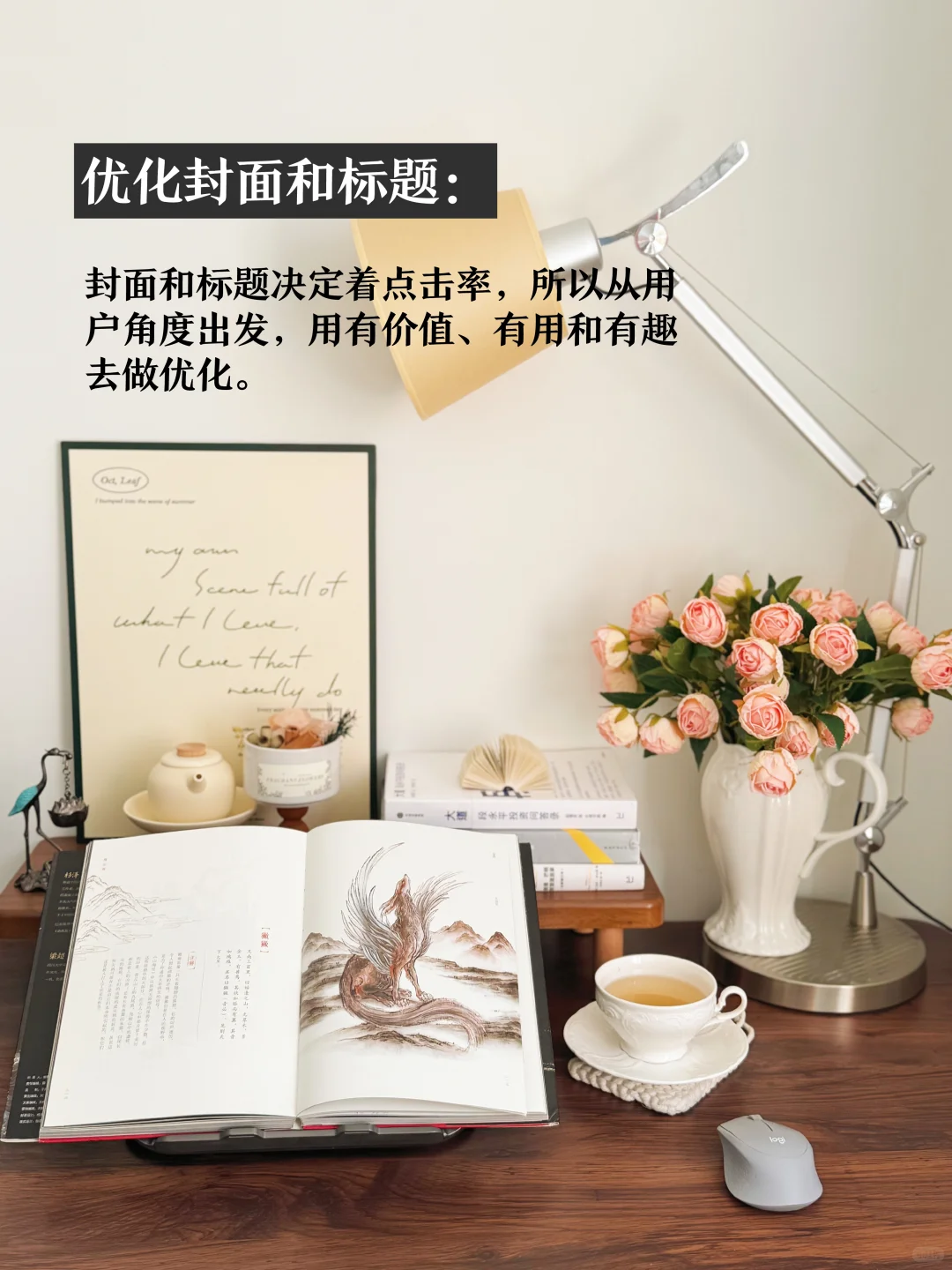 ✅ 优化封面和标题:封面和标题决定着点/击率,所以从用户角度出发,用有价值、有用和有趣去做优化。