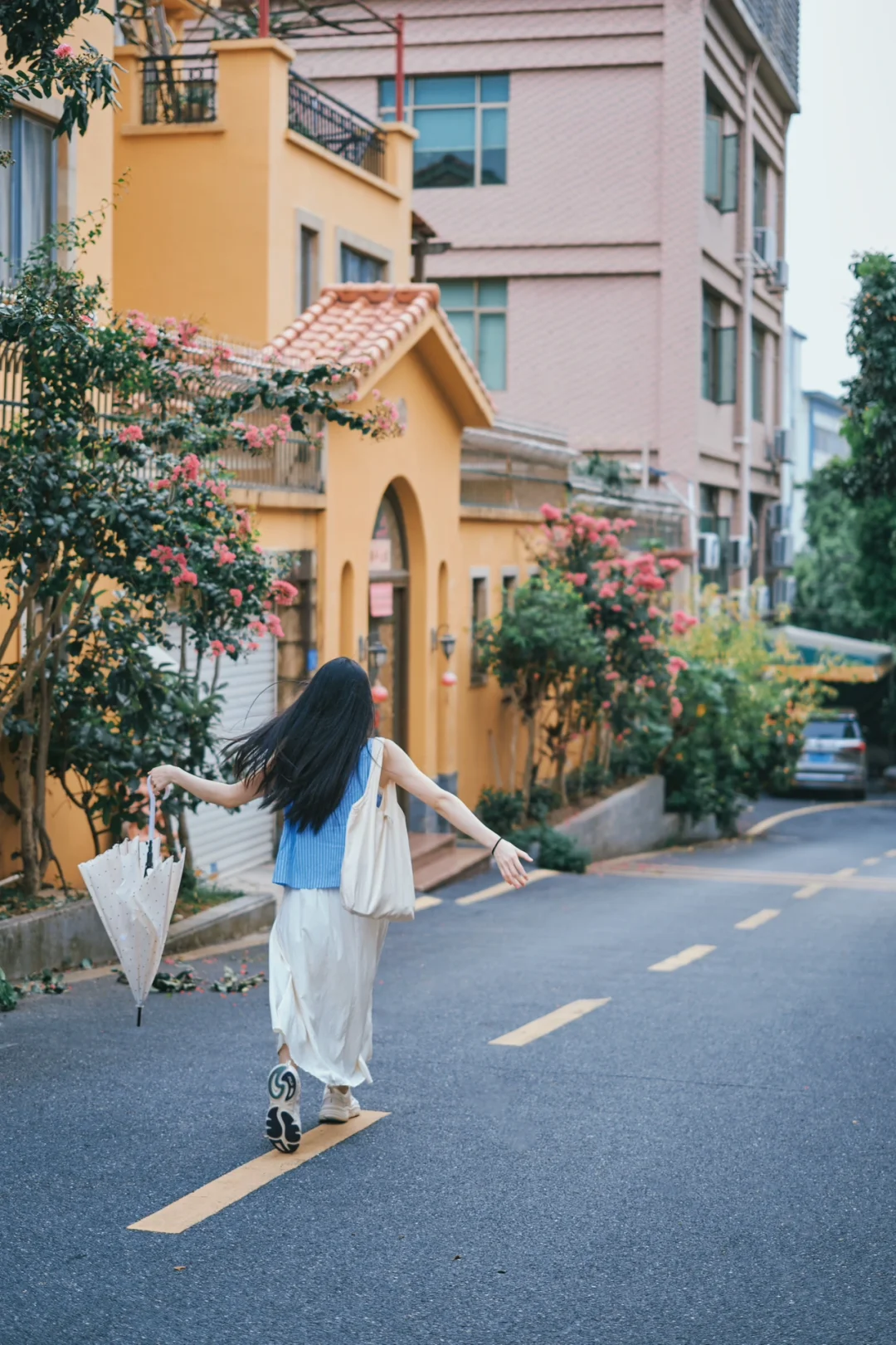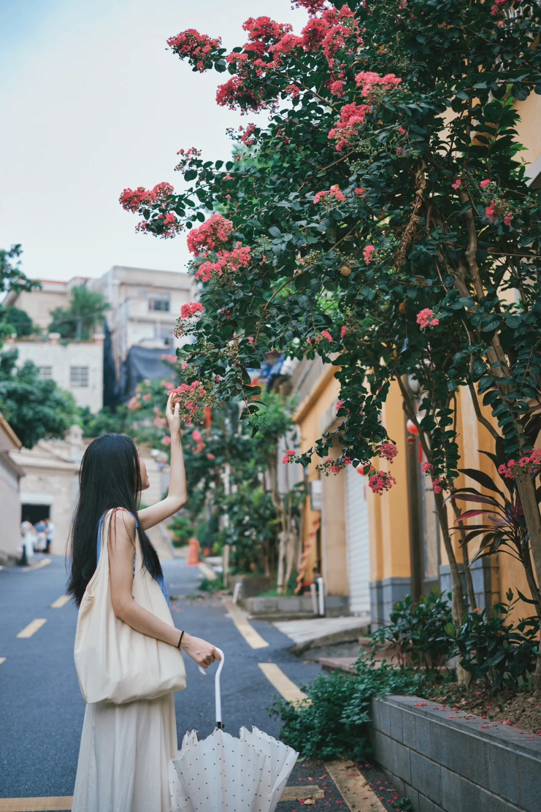这是一个藏在广州番禺大石的一个社区,拥有无可挑剔的干净小巷和街道的地方,每条小巷都装饰着生机勃勃的盆栽植物,精心布置和培育。无论是靠墙停放的一辆电动车,还是门口种植的紫薇花,每一个画面都不由自主地想让人按下快门,把平凡定格成非凡的画面。